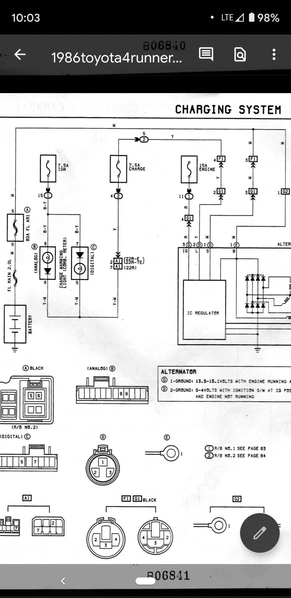 I installed a 1985 22r in my 1984 toy 4x4 altinater wiring does not. We're facing recurring alternator failures. A 60 amp alternator fuse and probably an unused glow plug slot. The customer had tried a new voltage regulator with no change in the over charge condition. First 2 failures have been the voltage regulator.